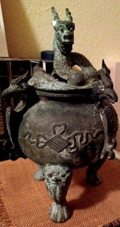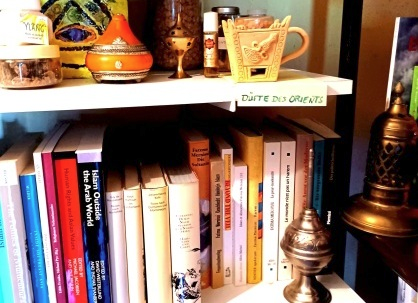 Düfte, Räucher-Utensilien und chinesisches Räucherfass in der Interreligiösen Bibliothek (IRB)
