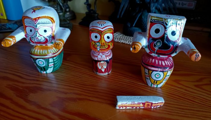 Einmal im Jahr werden sie auf 3 Wagen in Übergröße durch die Straßen von Puri gefahren, wobei Tausende sie begleitend bejubeln. Das berühmte Wagenfest von Puri, Ratha Yatra wird auch seit Jahren in Berlin gefeiert —vgl. Jagannath-Tempel in Puri >>> https://de.wikipedia.org/wiki/Jagannath-Tempel